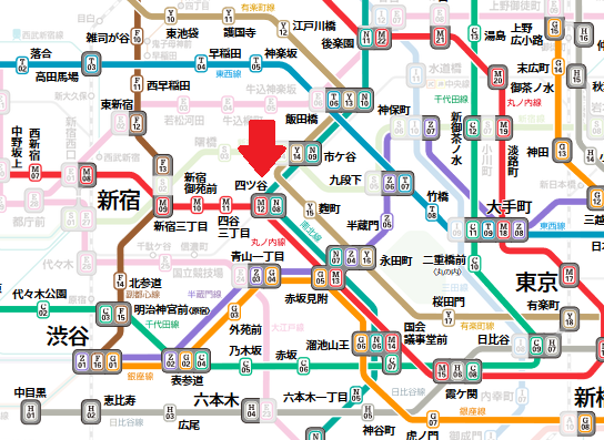 四ツ谷駅 赤坂口を出て、左方向へ横断歩道を渡り新宿通りへ歩いて頂きましたら目印に『ドトール』があります。ドトールの横に1F花屋『杏樹』があり、奥にエレベーターございますので2階までお上がりくださいませ。