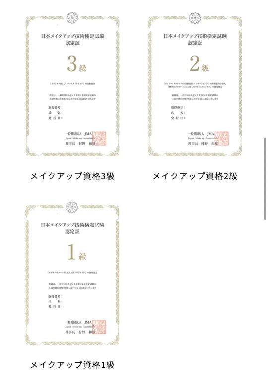 ◆日本メイクアップ技術資格検定(3級・2級・1級)