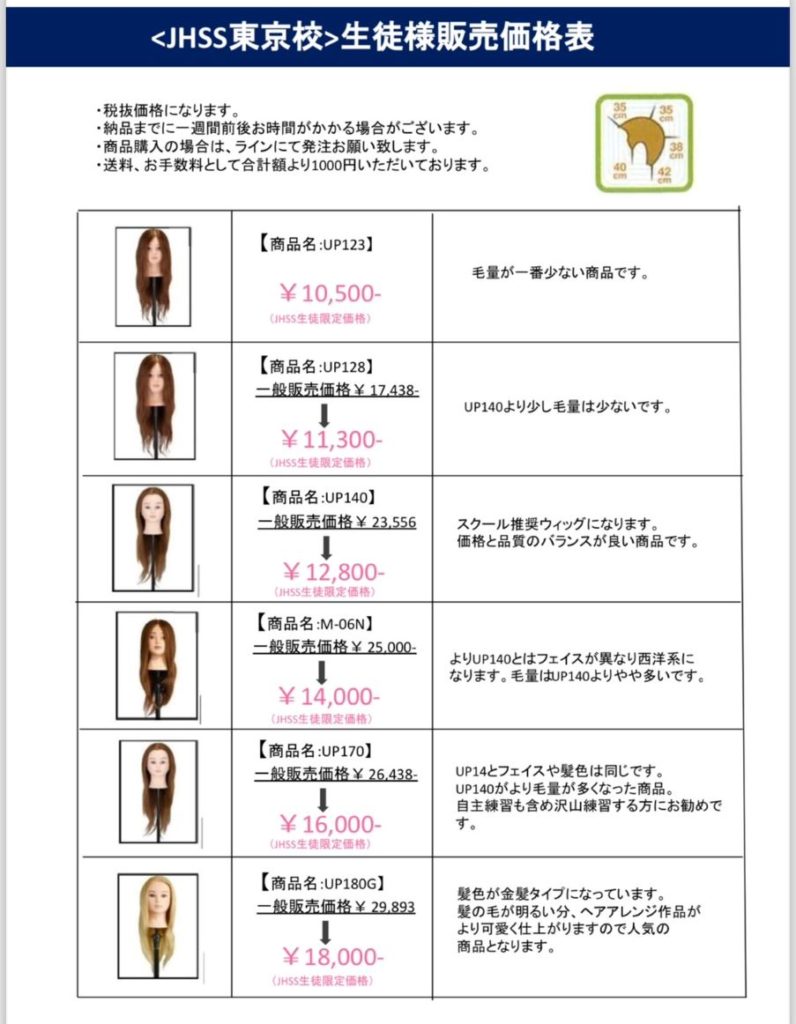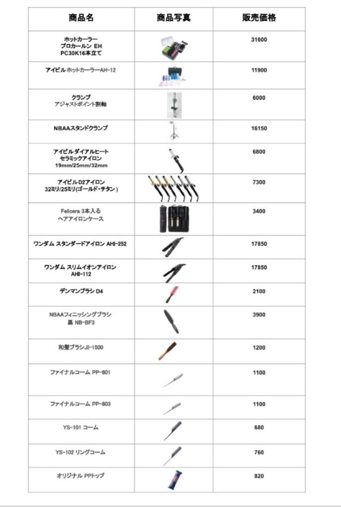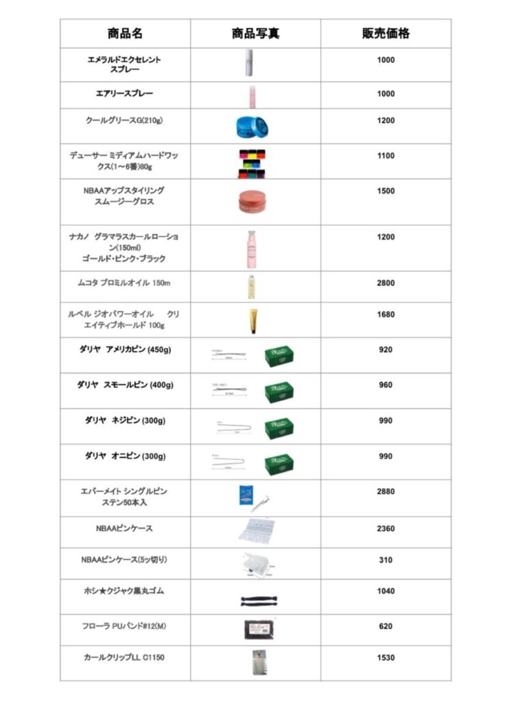 2024年のヘアセット推奨教材一覧表になりますので、ご覧くださいませ✨